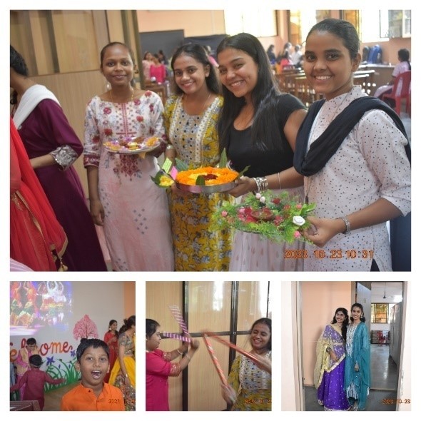On 23rd October Students of the First Year put in their ideas and creativity and decorated the Thalli beautifully. The second year students had to make badge for annual day function. It was an individual competition. We then had Dandiya dance with the special children in the class.